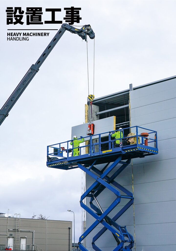 建設業界のクレーン部門を活かして世界最大級のクレーンをはじめ、各種建設機械にいたるまで最新鋭機種を利用し、建築土木・プラント・風力発電所建設などの分野で実績を残し、高層化、大プロジエクト化する業界においてあらゆる状況に対応できるようにカを注いでいます。